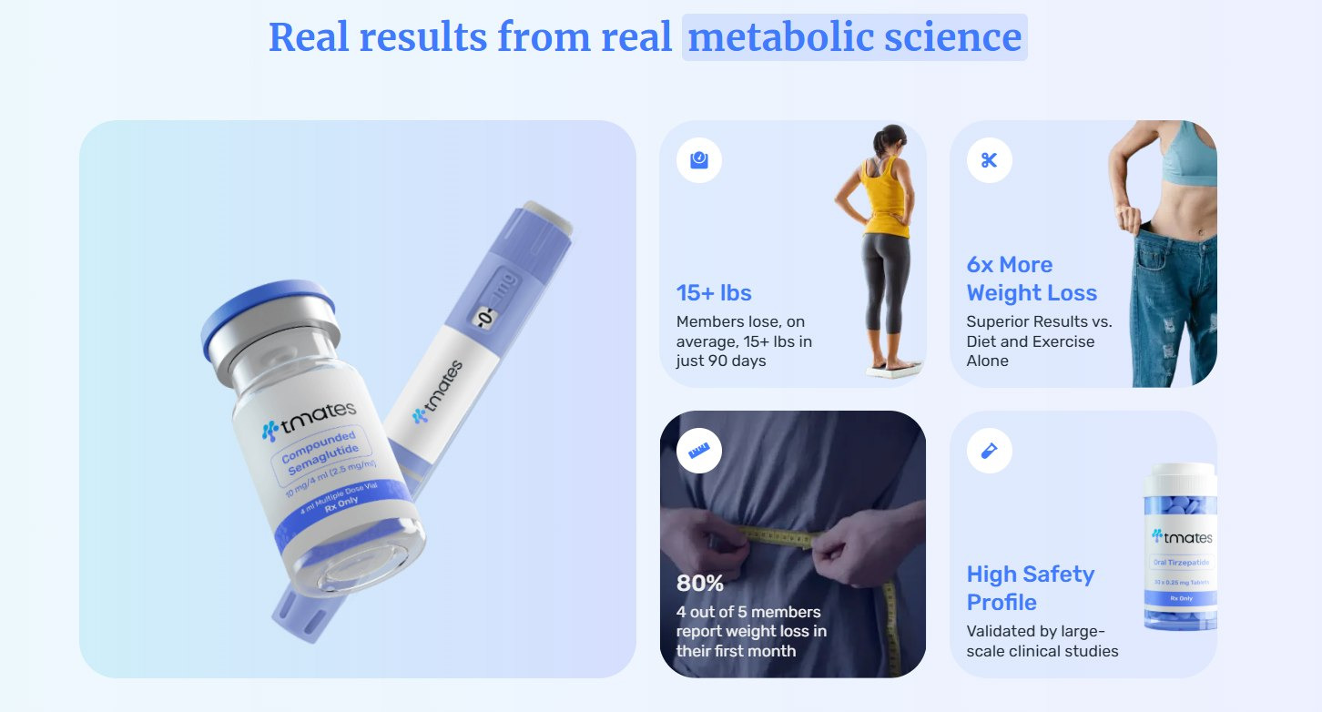 TMates changes the game by offering a telehealth-based weight loss program that makes Semaglutide (and other GLP-1 options) accessible, affordable, and medically supervised. With thousands of satisfied customers, TMates has quickly become one of the most trusted names in modern weight loss care.